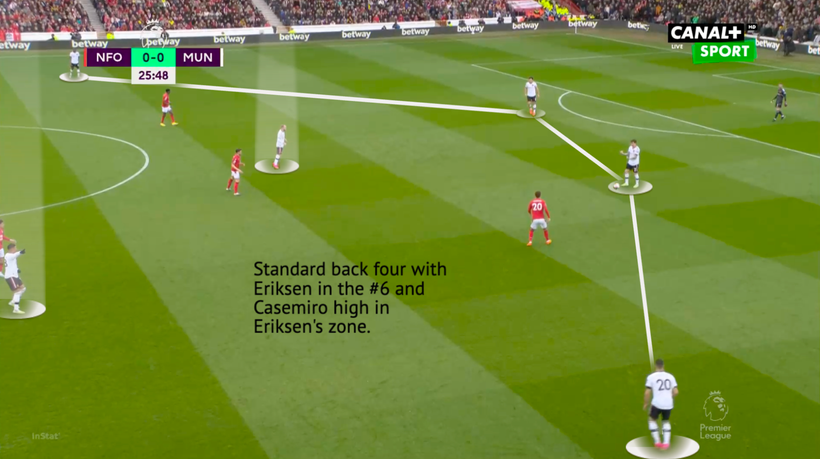Fluidity was also common in midfield as Eriksen often dropped deep into the #6 with Casemiro interchanging with him positionally in the left #8.