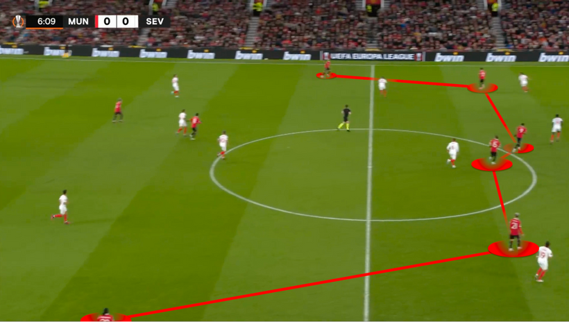 All of a sudden, United's build-up structure started to look a little bit more disjointed, making it harder for them to build play.