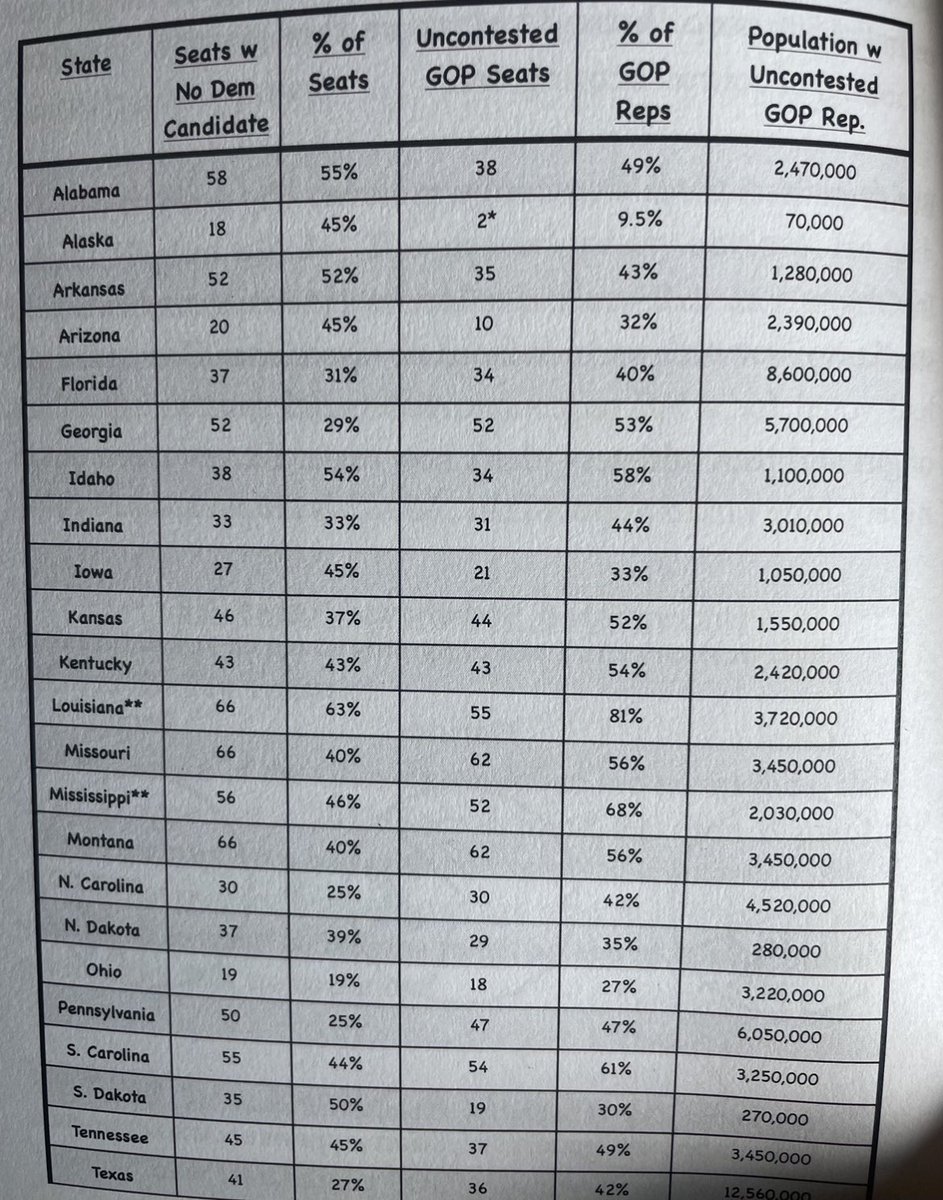 Democrats focus so much on a few swing states we have decided it’s OK to let the Mike Johnsons of the world, or the Tennessee Republicans of the world, or the book banners, or the abortion banners (no exceptions) , and so on, do all they’re doing…