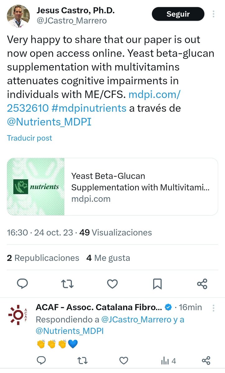 Este que he presentado es solo un ejemplo, pero no hay más que indagar en las publicacione del doctor Alegre y del doctor Castro para saber que no es el único. Estos suplementos (que no medicamentos) no se venden en las webs de las empresas como enfocados a pacientes de ME. 16/