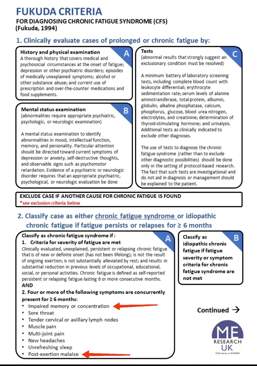 🚩Los criterios diagnósticos utilizados son los de Oxford (1991). Estos criterios no incluyen el PEM/ANPE, que es el sintoma cardinal de la #EncefalomielitisMialgica. Internacionalmente se desaconseja su uso por laxos 1/n