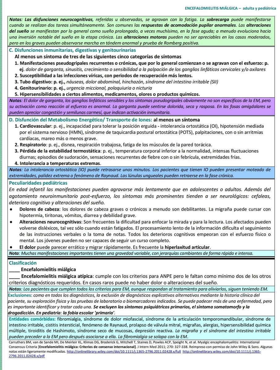 1. Los Criterios de Consenso Internacional (2011). Son los más precisos, el síntoma principal es el ANPE y, a diferencia de otros criterios, discrimina a pacientes de ME de otras enfermedades. Reducir ME a fatiga crónica va contra la evidencia científica!