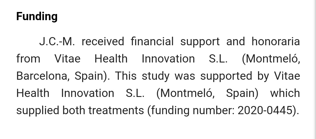 Y así llegamos al conflicto de intereses. Resulta que como los propios investigadores reconocen, no solo el estudio está financiado por Vitae Health Innovation, la empresa que comercializa el suplemento ImmunoVita, sino que el investigador principal 11/