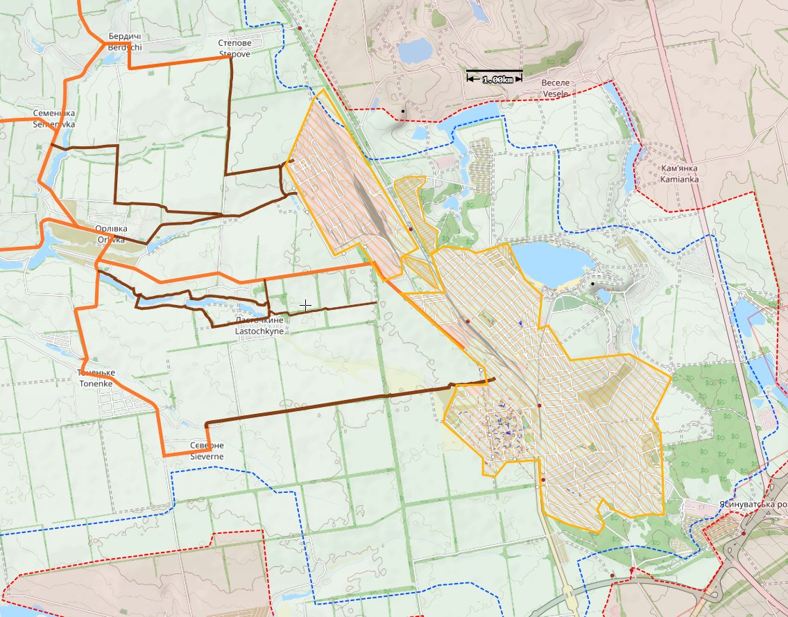 We can immediately see that only one MSR is leading all the way into Avdiivka, the O0542.