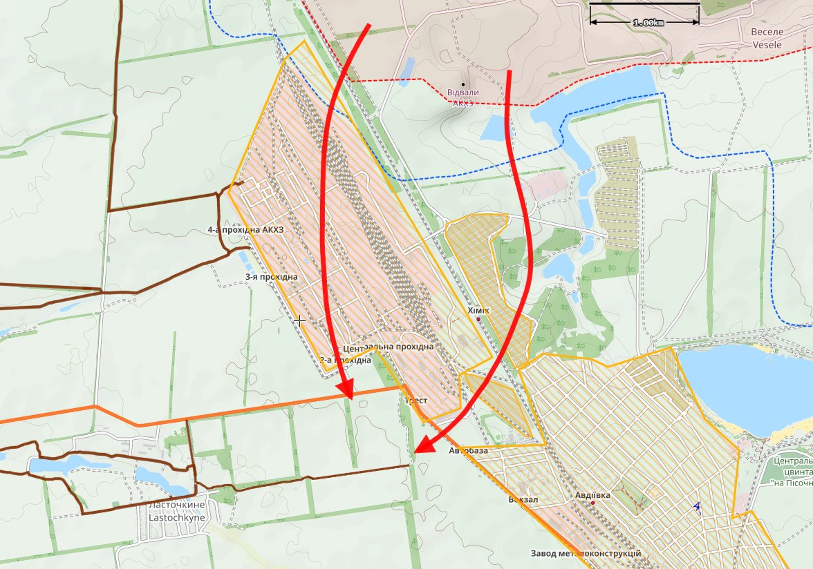 If Russia manages to advance to the industrial area or south of the waste heap, there is a danger of Avdiivka getting cut in two.