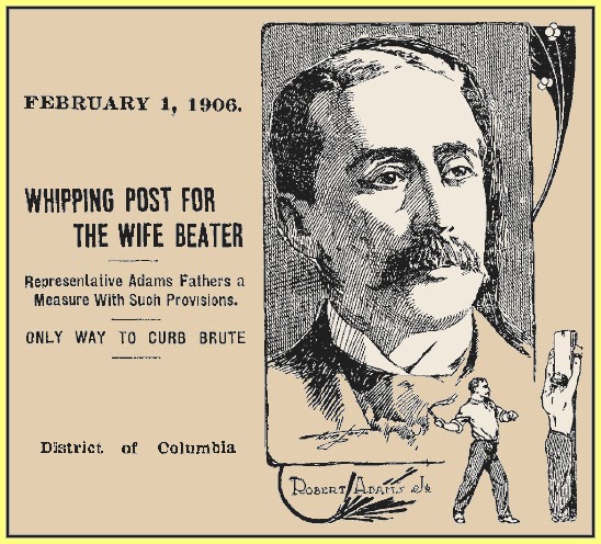 El representante de Columbia Adams promueve una medida que traería al lugar el poste de azotes para maltratadores de mujeres. 1 de febrero de 1906.