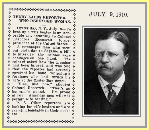 Julio de 1910. Este artículo elogia a un hombre que, por sus propios medios, azotó a un hombre que maltrataba a su esposa.