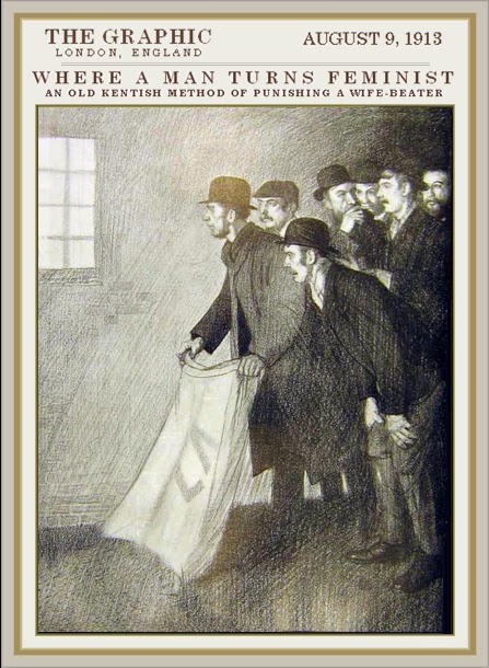 Artículo británico de agosto de 1913 que muestra cómo en algunas zonas de Inglaterra sobrevive una antigua tradición para castigar a los golpeadores de esposas.