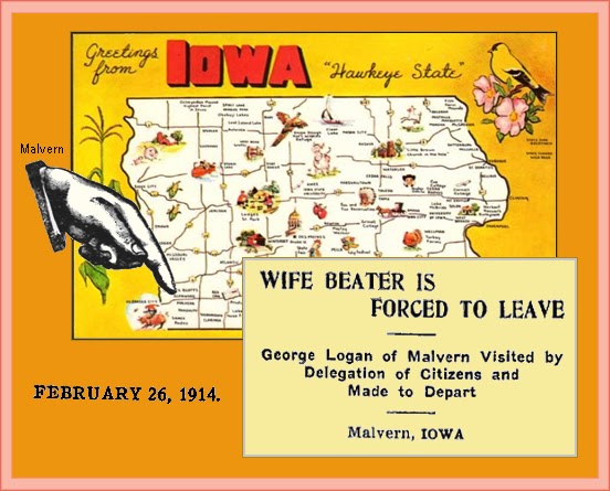 Este artículo de un periódico de Iowa, publicado el 26 de febrero de 1914, muestra a un maltratador siendo obligado a irse de su zona tras ser visitado por una delegación de ciudadanos que lo querían expulsar.