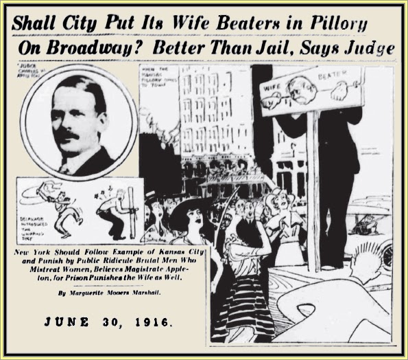 Junio de 1916. Juez neoyorquino promueve castigar a los golpeadores de esposas en picotas en Broadway, considerando que es un método de castigo mejor que la prisión.