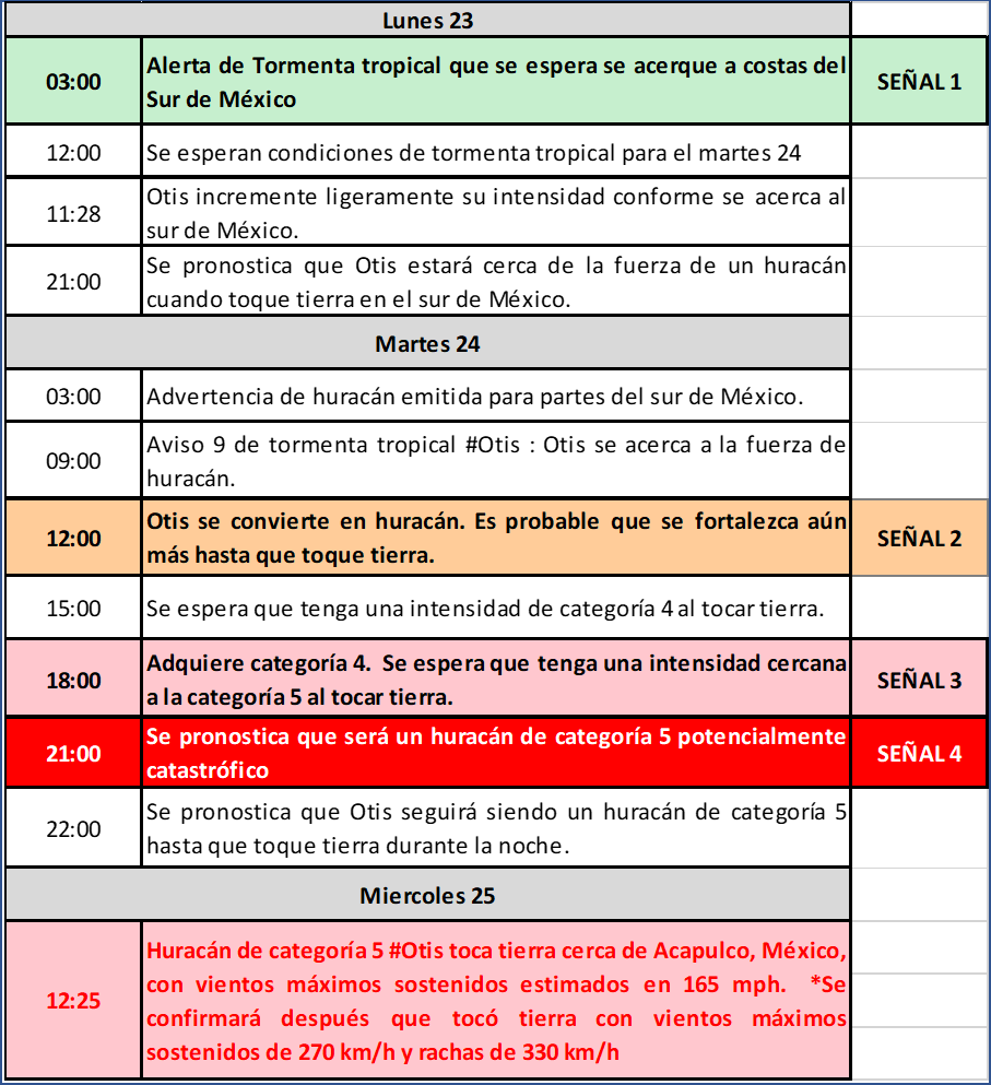 El NHC Eastern Pacific emitió alrededor de 16 alertas de magnitudes crecientes sobre #Otis, ⤵️