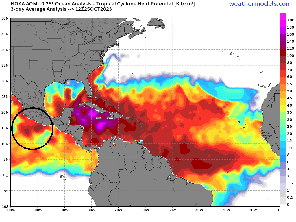 a las costas, mas energía habrá para los huracanes grandes.