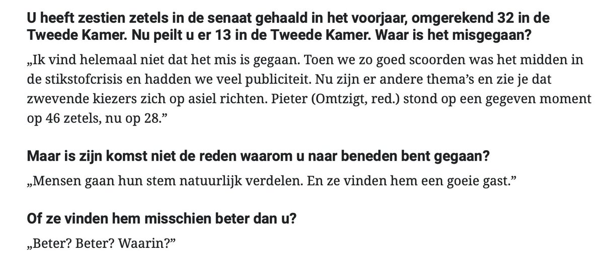 Ik voelde hem bij de totale leegte van Wopke Hoekstra, die liever nietszeggende teksten uitslaat dan een standpunt inneemt.