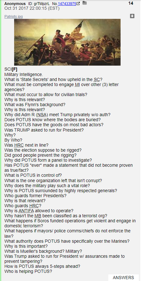 QDrops 1 and 2 are both ridiculous for what they claim will happen and for Q screwing up his story. In QDrop 1 Q claims Hillary's passport will be flagged on 10/30 and the National Guard is being called up to quell riots stepping from Hillary's arrest on 10/30.