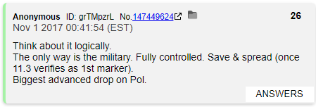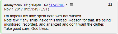 After spinning his wheels a bit about "The truth about Haiti" Q sees that October 30th is about to come around and Hillary's not going to be indicted so it's time to leave. Q gives one last vague reference about Trump going to Asia and then says he's outta here, take care folks!
