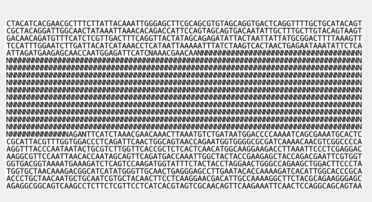 Similarly, using the NIH’s BLAST (Basic Local Alignment Search Tool), sequences from various labs appear remarkably similar, with near-identical stretches of NNN’s. (Some sequences, mostly from labs known for less-than-perfect sequencing, differ somewhat.) 30/45
