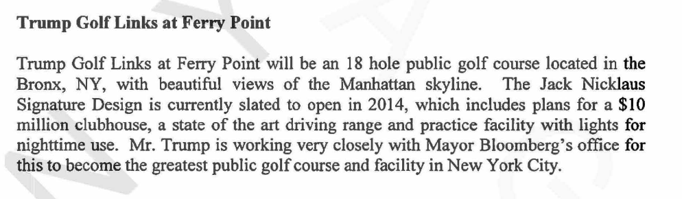 The witness is examining records regarding Trump Golf Links at Ferry Point.