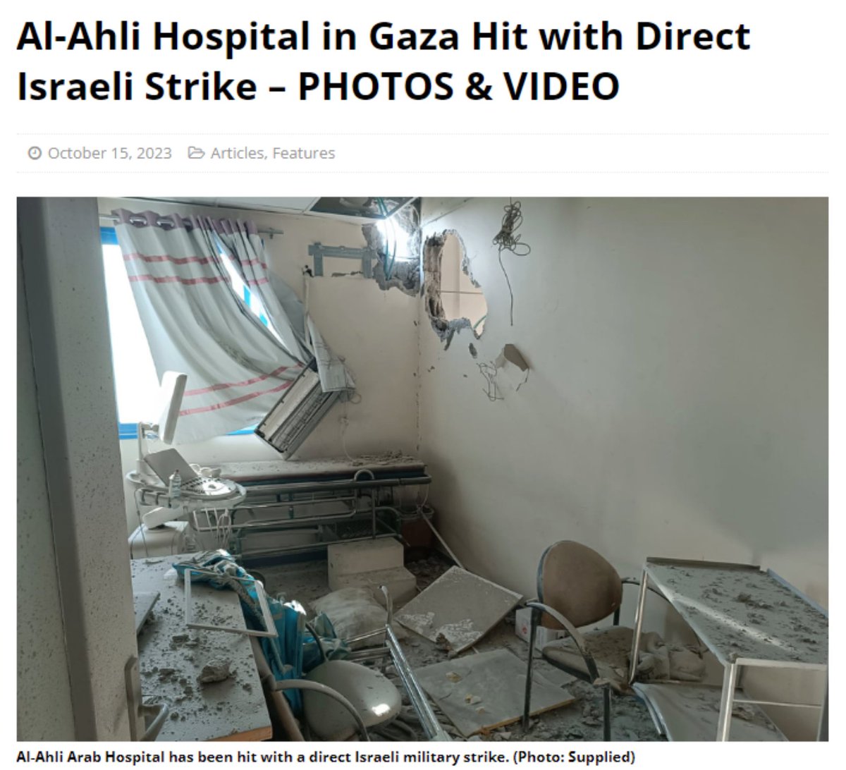 چند نکته: ۱.براساس گزارش رسمی سازمان ملل، از آغاز جنگ ۱۱۵ حمله به مراکز درمانی در محدود فسلطین اشغالی (اراضی ۱۹۶۷) رخ داده داده که ۵۱مورد آن مربوط به نوار غزه است. ۲.در ۱۴ اکتبر(۴روز قبل)سازمان بهداشت جهانی در بیانیهای بسیارتند علیه اسرائیل بیان میدارد:/۱ news.un.org/en/story/2023/…