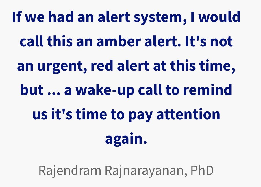 "Wenn wir ein Alarmsystem hätten, würde ich dies als gelben Alarm bezeichnen", sagte Raj Rajnarayanan @RajlabN. "Es ist kein dringender, roter Alarm zu diesem Zeitpunkt, aber der gelbe Alarm ist definitiv ein Weckruf, um uns daran zu erinnern, dass es wieder Zeit ist, aufmerksam