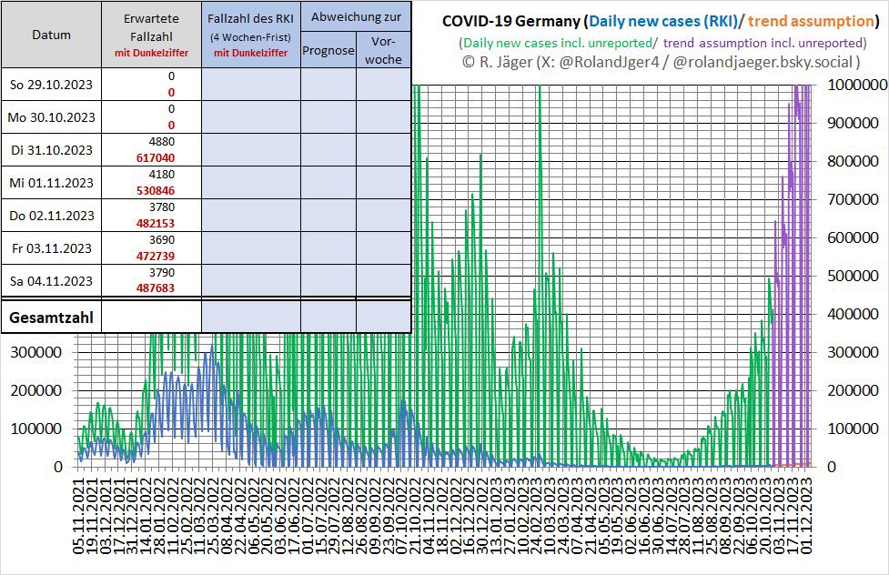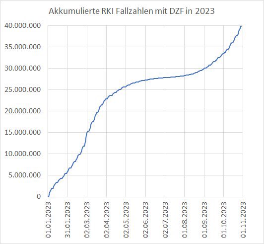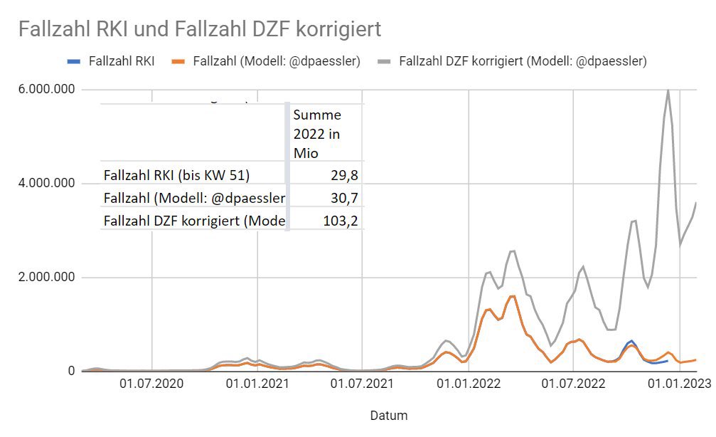 In 2023 gab es bislang unter Berücksichtigung der Dunkelziffer auf Basis der Berechnungen von Roland Jäger (vielen Dank für die Bereitstellung der Daten @RolandJger4) insgesamt kumuliert etwa 40 Millionen #COVID19-Fälle in Deutschland. Bis zum Jahresende…