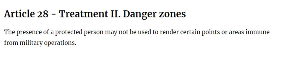 First, Geneva IV Article 28 makes clear that the presence of civilians does not immunize locations that are used for military purposes. Perhaps the single most important clause that shows Israel is complying with IHL. But what about hospitals? 2/