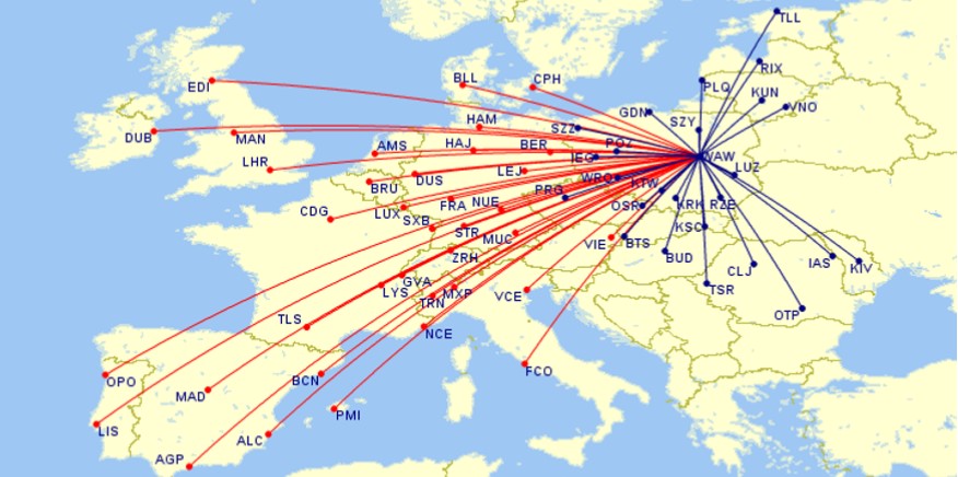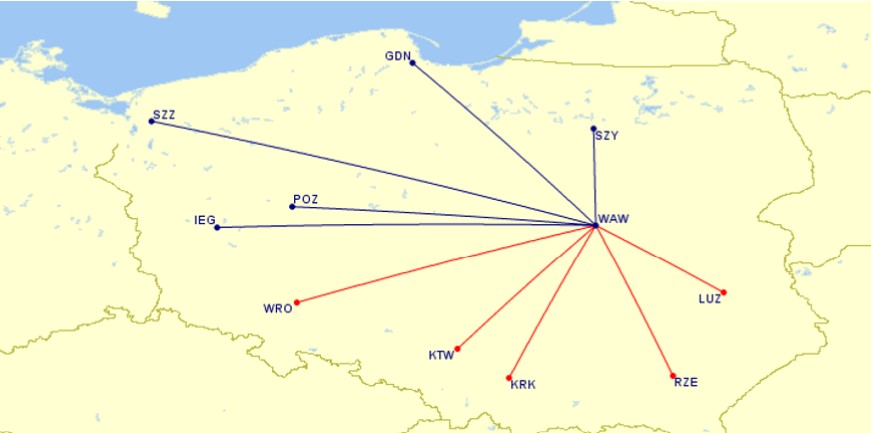 Wszystkie połączenia wskazane na mapie już istnieją, poza WAW-SZY