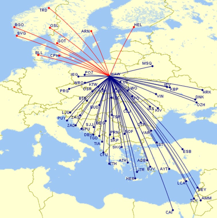 WAW leży na trasie przelotu ze Skandynawii do Europy Południowo-Wschodniej, 🇬🇷 🇹🇷 oraz na Bliski Wschód.