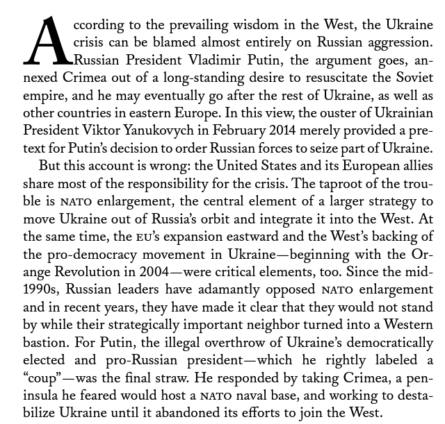 This is moronic. Suggesting that the potential conditions for a ceasefire (UA potentially not joining NATO) proves a theory about the war’s causes is just completely faulty logic esp. since NATO never attacked Russia. The American left seriously needs to sit this one out.