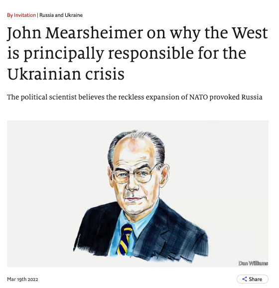 2022 commentary by Mearsheimer and other realists is nothing if not consistent (and consistently as wrong in 2022 as it was in 2014).