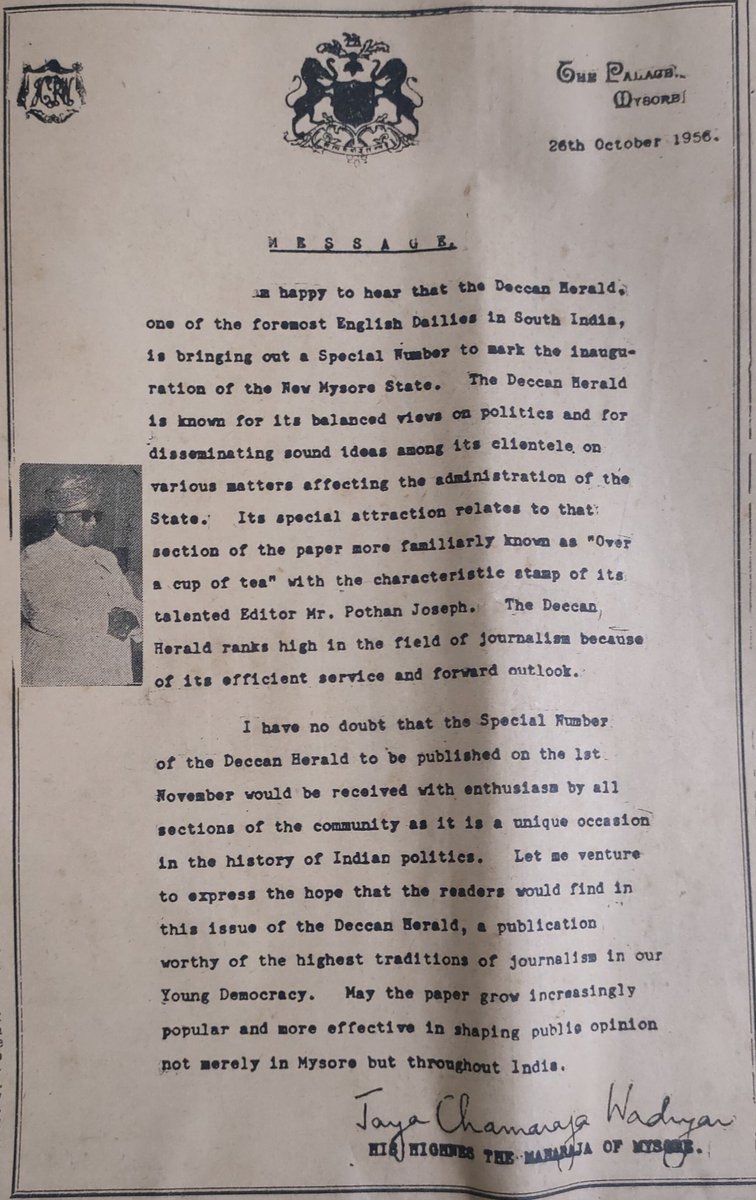 A letter by Jaya Chamaraja Wodeyar to Deccan Herald!