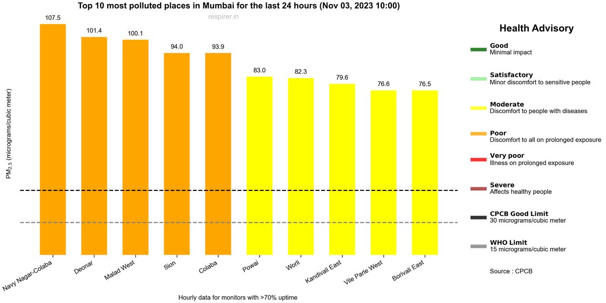 🔴The most polluted place on November 3 was Navy Nagar-Colaba. But if we consider seven-day averages, Sion was the most polluted.