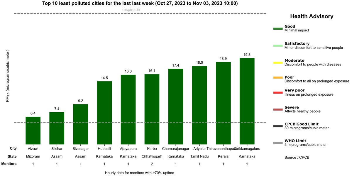 🔴 Top 10 least polluted cities for the last week (Oct 27, 2023 to Nov 03, 2023 10:00)