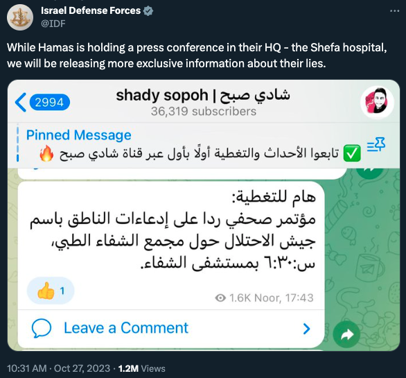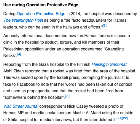 IDF has been broadcasting the message that the hospital is Hamas' headquarters at length; reportedly Hamas is holding a press conference there, but I haven't confirmed that.