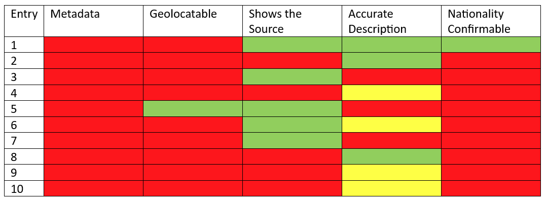 Only one entry has enough information to confirm the geolocation, and almost everything about Oryx's use of that video was false.