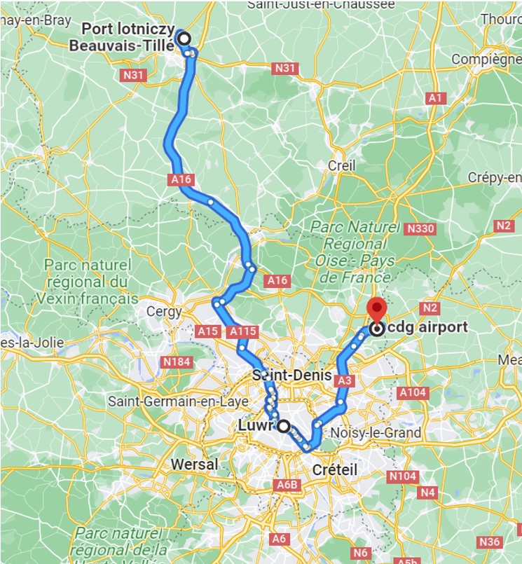 Obie linie operują na lotnisko "PARYŻ" - BEAUVAIS, położone jedyne 80km od miasta. Bus 17 euro, taxi 150 euro