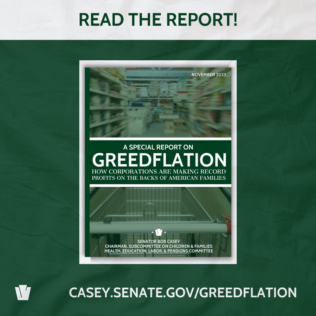 Today, I'm releasing a report on greedflation that exposes how corporations are making record profits on the backs of American families.