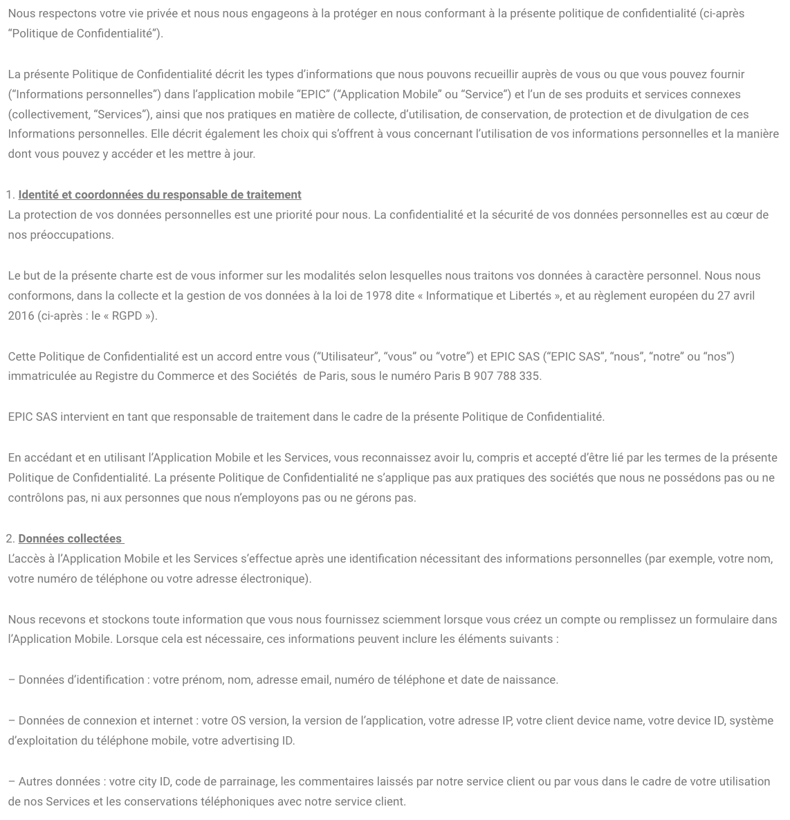 On découvre sur le même site l'existence de la société EPIC SAS, qui serait enregistrée au RCS de Paris.