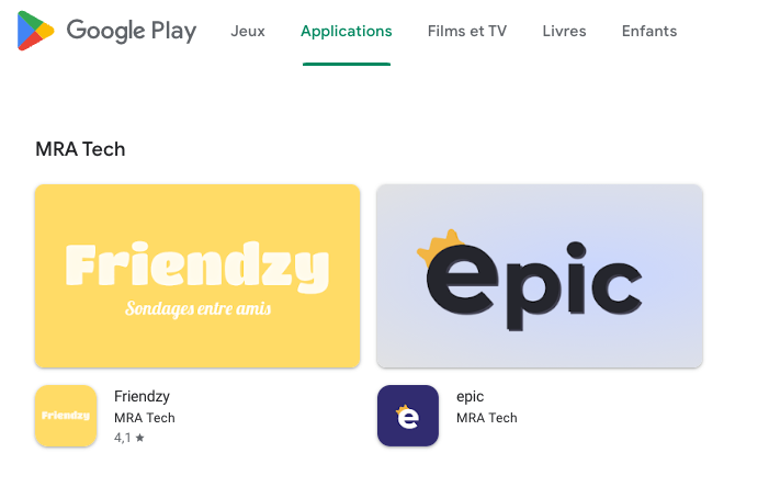 Parlons enfin de MRA Tech, entité qui a publié les applis Crush (renommée Friendzy cet après-midi) et Epic sur Android.
