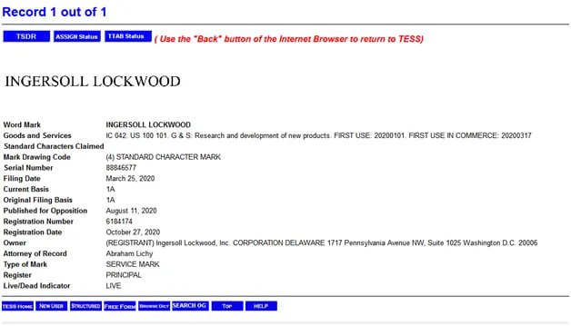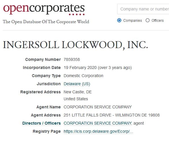 The only reference to Ingersoll Lockwood being a company is a registration in New Castle, Delaware from February 19, 2020. Remember this date.