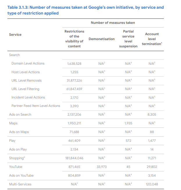 Currently reading Google's DSA transparency report. Some (unorganised) first impressions below: