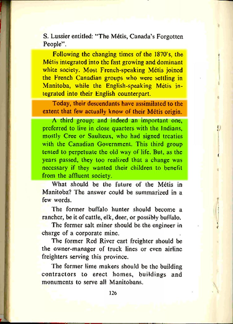 and really @MBMetis_MMF the hypocrisy is astonishing, the bold faced lies even!"Page-126." "A-Social-History-of-the-Manitoba-Métis.1974. published by Manitoba Metis Federation Publishing talking about how all the Metis assimilated into French white communities. 🤑😳🤣 "Page-125."