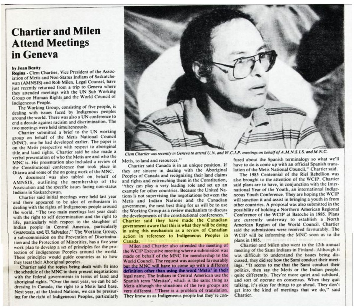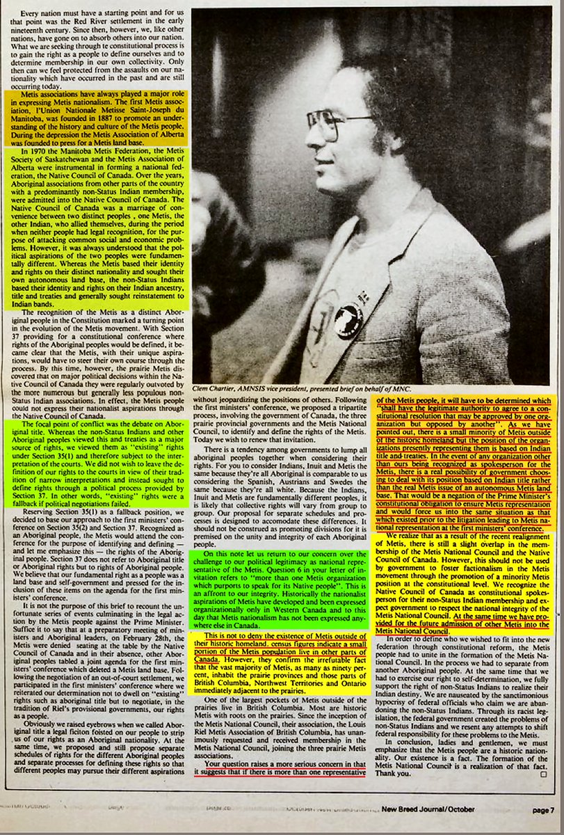 Constitutional meeting not a complete failure - March 1984 - New Breed. - The definition proposed by MNC did not receive approval by NCC. And who repatriated the Metis into the constitution again? Oh right , NCC and Harry Daniels.