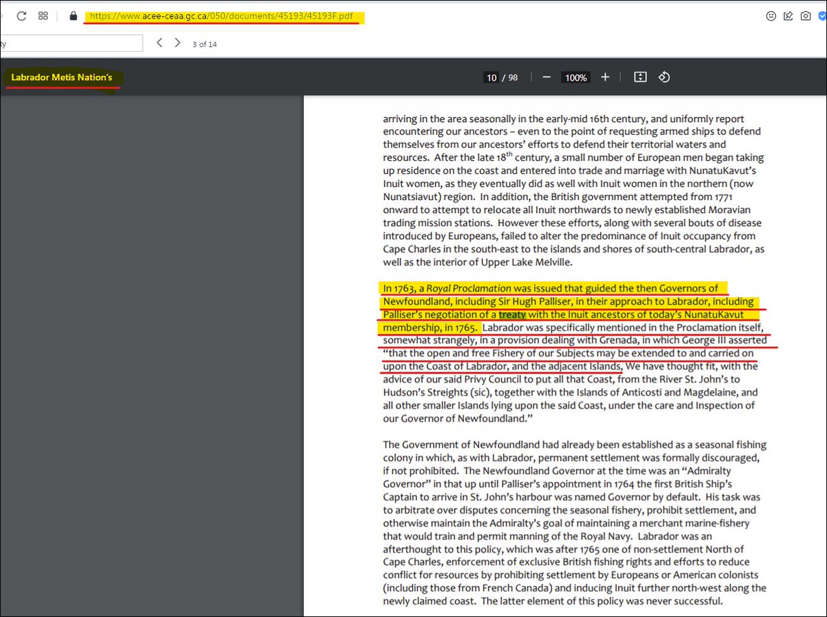 Letter from Harry Daniels to Kirby Lethbridge, then president of the Labrador Metis Nation as to who he meant to be a citizen of the Metis Nation. "Kirby Lethbridge-Labrador Metis Nation" " -Labrador Metis Nation-Sir Hugh Palliser negotiation of a treaty acee-ceaa.gc.ca