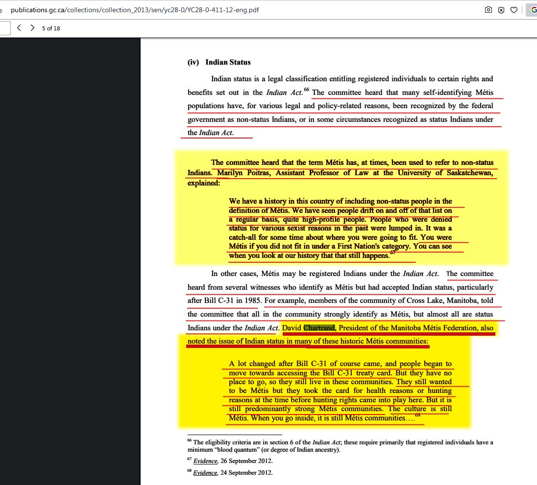 YC28-0-411-12-eng.pdf - the people who own themselves - David Chartrand - president of the MMF also noted the issue of the Indian status in many of these historic Metis communities. @MBMetis_MMF
