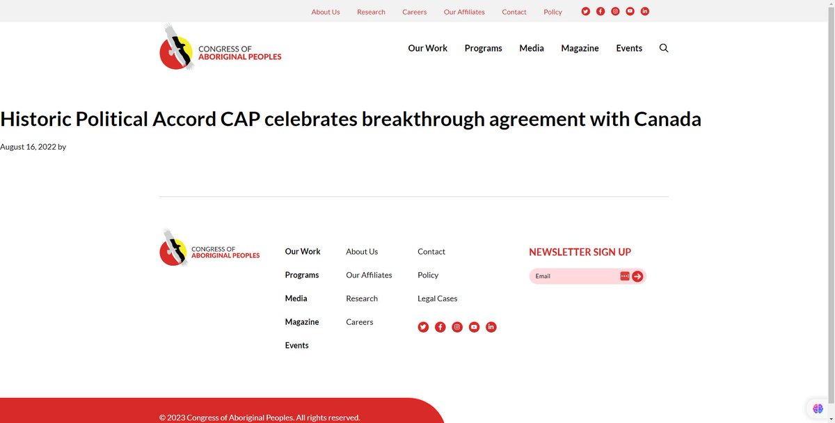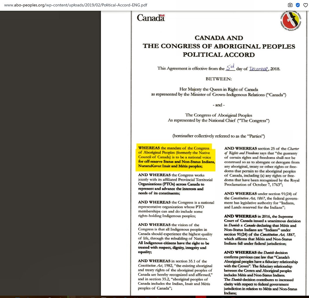 "Political-Accord-ENG - Canada and CAP Political Accord Dec 2018 - pg1.png" "Historic Political Accord CAP August 16 2022." "senate of Canada-Kevin Daniels- CAP- talking about the Metis Harry Daniels spoke of, the Metis from coast to coast"