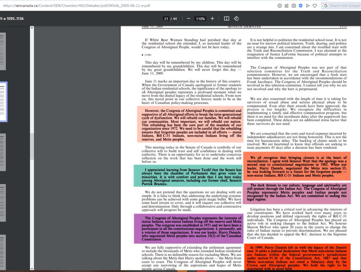 into the constitution and he used a very different definition than you are helping colleges and universities to bypass by only recognizing MNC/MMF Metis definitions. Historically all Metis had the same definitions but Academics and your gov is helping to erase and censure who is