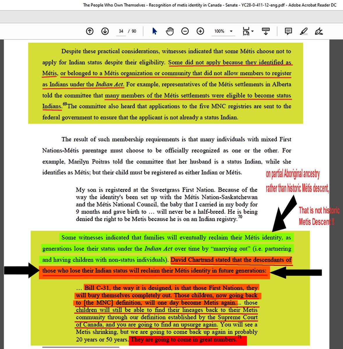 The People Who Own Themselves-Recognition of Metis Identity in Canada - Senate - YC28-0-411-12 - David Chartrand - families will eventually reclaim their Metis identity, as generations lose their status under the Indian Act over time. Hmm Chartrand, can we say hypocrite, 😳🤔🤑
