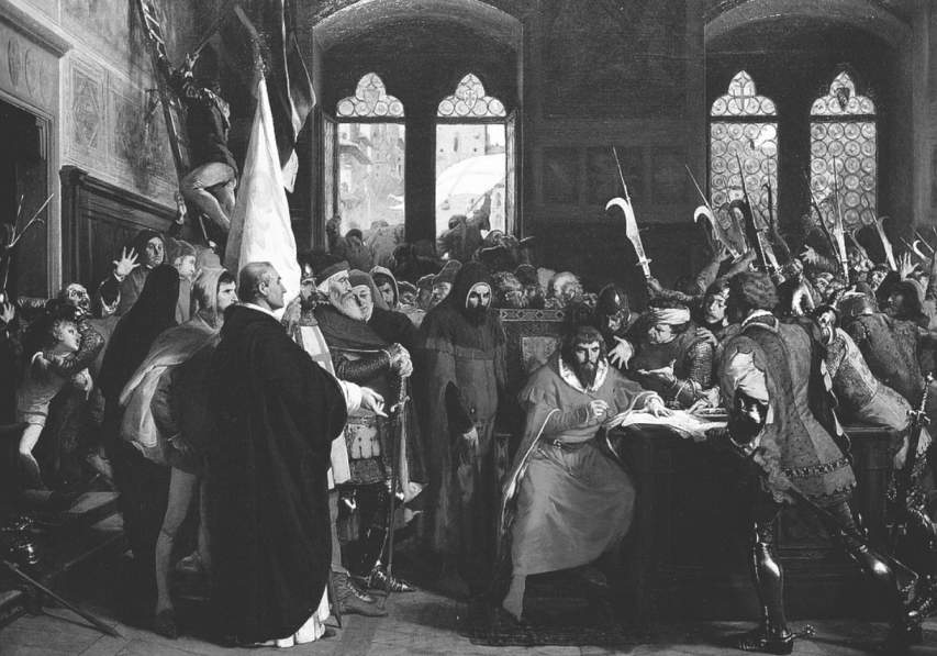 Il 23 settembre 1343 quattromila operai scesero nelle piazze al grido di “Muoiano gabelle e il popolo grasso”.