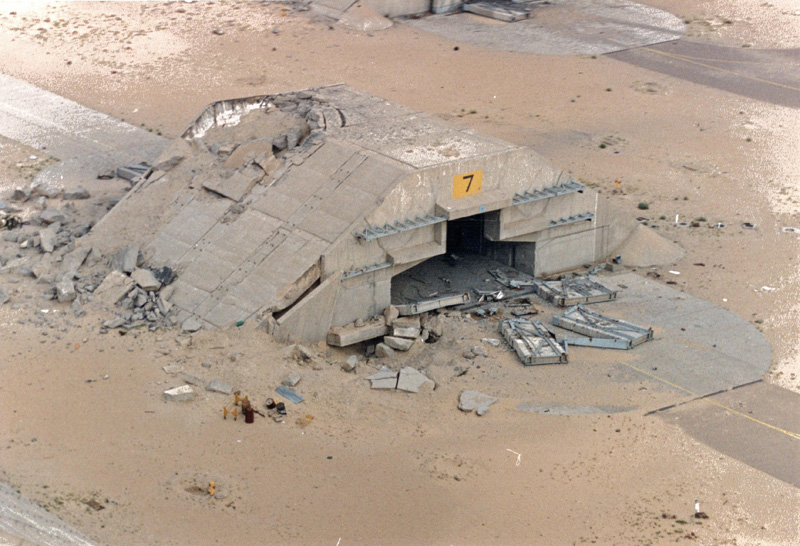 Ahora son las 06.17 horas del 24 de enero y los cuatro aviones permanecen en sus refugios. Los iraquíes aún no han podido despejar las pistas de Al Kut de las municiones de explosión retardada lanzadas por los bombarderos enemigos. La limpieza se prolonga hasta las 11.45 horas.