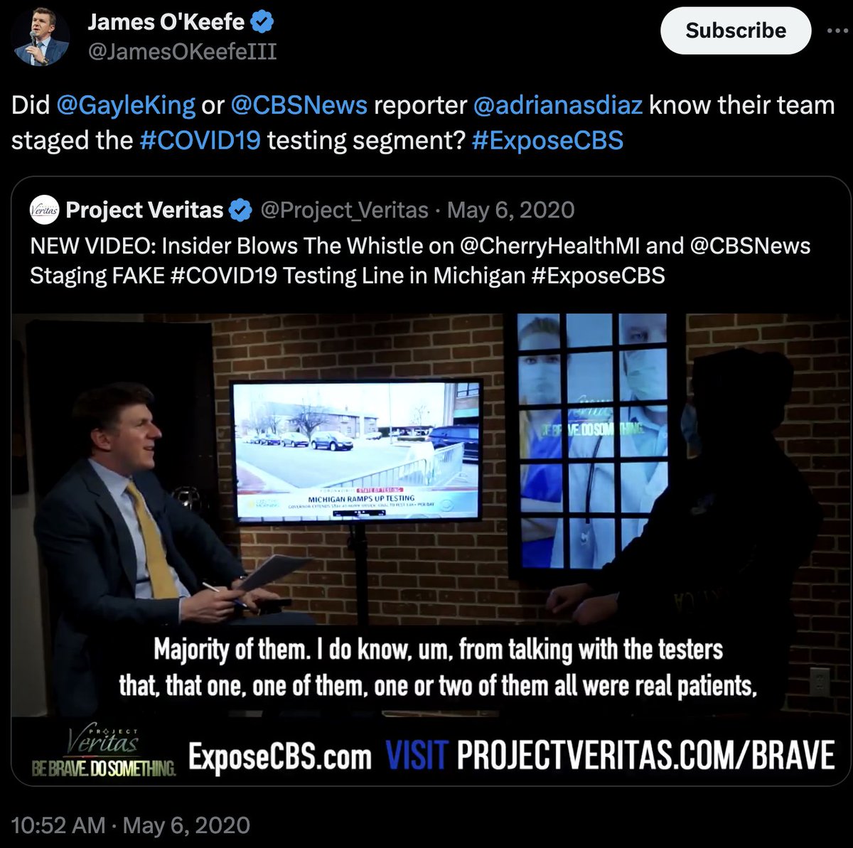 "Did @GayleKing or @CBSNews reporter @adrianasdiaz know their team staged the #COVID19 testing segment? #ExposeCBS"
